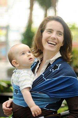 The rich browns and varied blues, along with the beautifully interwoven stars, suns, and leaves, reminded us of Isis, Egyptian mother-goddess, daughter of Earth and Sky. This colorway is especially neat because depending on which part of the print is showing, it looks different each time you wrap it! The rich browns and varied blues, along with the beautifully interwoven stars, suns, and leaves, looks a little different each time you wrap it. Feels like the perfect soft snuggly t-shirt, the one that you have had forever and fits you perfect every time. - Sarah Slaughter Hunsaker Our Stretch Hybrid Wraps: *All the snuggle of a stretch wrap with the support of a woven! *Supports children up to 35 pounds on the front, hip, or back. *Made from cotton that is strong, silky-soft, and lightweight. *Will not pill or fade with washing. *Tapered tails so the wrap is not bulky when worn. *Range of patterns and styles for every family. *Includes full length DVD and quick-start brochure. *Fairly traded .