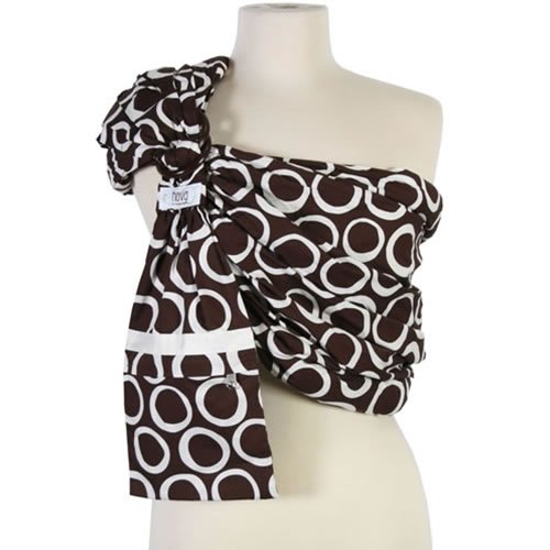 Simplicity and style are what the Ezra Hava baby sling offers, with cream circles against espresso backdrop. For mom or dad, Ezra is a fantastic choice! The Hava baby sling is a fashionable, lightweight, compact and breathable ring sling. It features a 7 x 7 inch zippered pocket in the tail, a small, contoured shoulder pad for your comfort as baby gains weight, pleated fabric around the rings for fantastic weight distribution and sleek padding through the top and bottom rails to keep red marks off of your baby. Includes an instructional DVD. Proudly made in the USA. Please determine your proper size by referring to the size chart shown as part of the alternate product images above. Start by finding the row that best describes your pre-pregnancy body. Focus primarily on your shirt size. The most accurate way to determine your size is to use a piece of string to measure from the cap of your right shoulder across your body to your left side at the waistline. If it is between 19 and 23 inches we would recommend the Petite size, if between 23 and 26 inches the Regular size, and if between 26 and 28 inches the Long size.