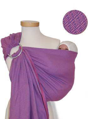Baby Sling From Germany Unique, beautiful patterns and colors The company's founder and fabric developer is a textile engineer All cotton used in the Storchenwiege Baby Sling is from controlled biological cotton farms (okeo tex). The weave differs from all other slings in the yarn strength used. In both directions (warp and woof ) of the cross weave Storchenwiege uses a double strength, not simple thread. Other wraparound baby slings use the double strength yarn only in one direction. This special weave does not influence the elasticity which is necessary to embrace your baby. The fabric is prewashed and preshrunk. This ensures the fabric has a minimal shrinkage of 2.5%. Most fabrics have far more. All slings are washed and dried without tension on the fabric. No chemicals are used in any of the proceedure. Storchenwiege is manufactured in Sachsen, Germany, under strict environmental regulations. Storchenwiege Baby Slings are Oeko Text 100 certified Storchenwiege Baby Slings have a double hemline for durability and the correct embracing of your baby's back All Storchenwiege Baby Slings have tapered ends to ensure easy tying All Storchenwiege Baby Slings come with detailed instructions. The instructions differ from others on the market as they give some extra hints in tying the sling. This is great for beginners as well as "Sling Fanatics." The instructions were developed with the help of a certified teacher of baby wearing from the Dresden, Germany, school of baby wearing instructors.Read more Storchenwiege Leo Violett Ring Sling