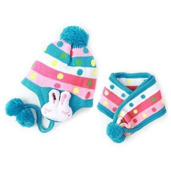 Product Description : ECOSCO Baby Infant Boy Girl Knit Beanie Pom Pom Hat Cap Rabbit Ear Flap Earmuff Scarf Combo Set Warm (BLUE)